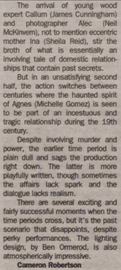 Review of Abandonment from The Stage, 17 August 2000. (1 of 2)