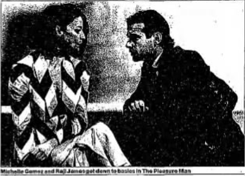 Photo of Michelle Gomez and Raji James which accompanied a review of The Pleasure Man in The Guardian, 7 February 2000. The review is not included due to the poor quality of the scan.
